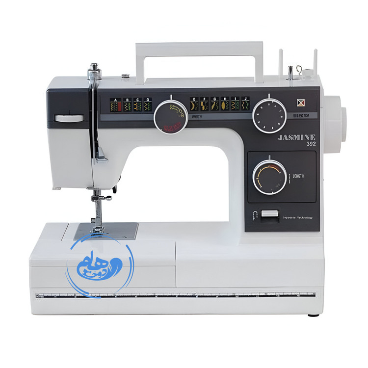 چرخ خیاطی یاسمین 392 دارای نخکن نیمهاتومات، بازوی آزاد، چراغ LED، ماسوره افقی، جادکمهای چهار مرحلهای و موتور قدرتمند با صدای کم است.
